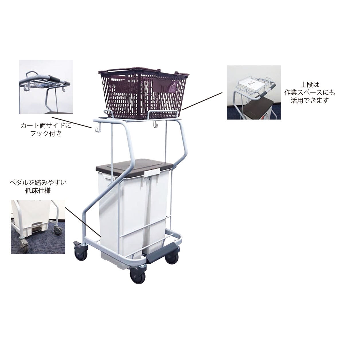 小回りの利くキャスターで施設内をスムーズに移動でき、作業効率をさらにアップ!