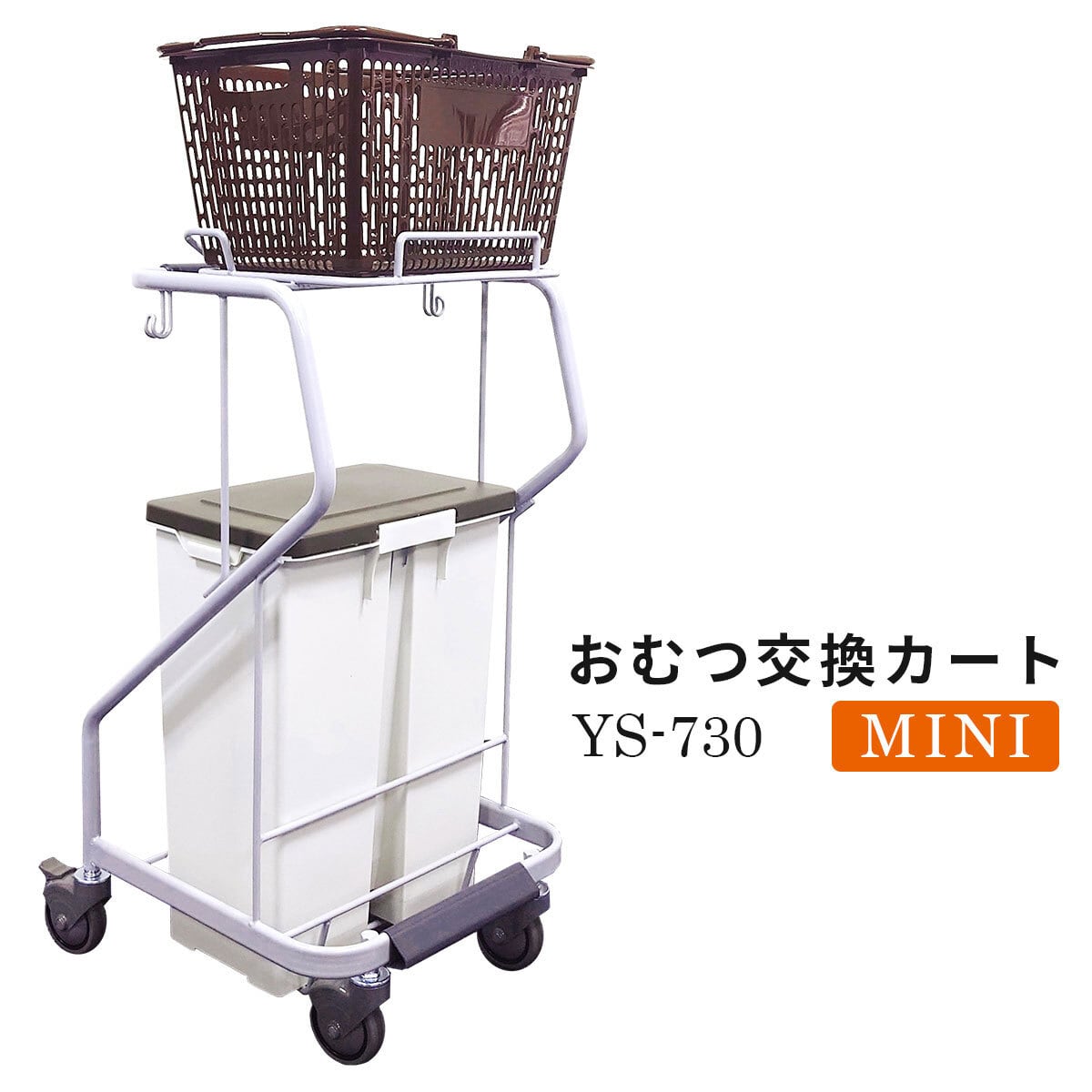 おむつ交換カート MINI YS-730 45L防臭ペール付き オムツ交換作業用台車【法人限定販売】※カゴは別売
