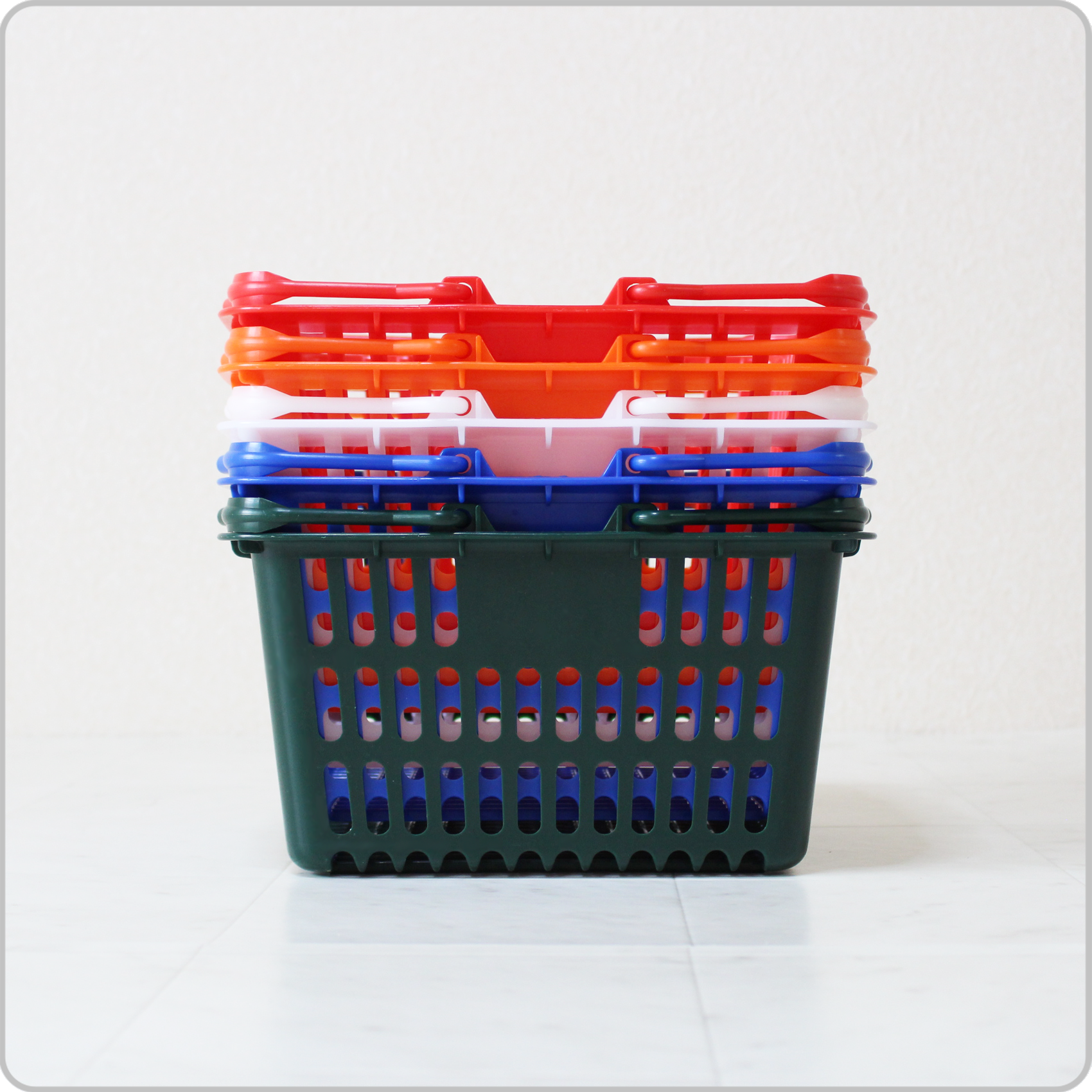 全国のスーパーマーケットの店内かごとしてお馴染みのショッピングバスケットです。
